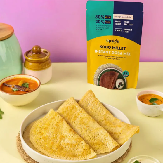 Upside Health is dedicated to transforming traditional nutrition into convenient, accessible solutions. Their Kodo Millet Instant Dosa Mix reflects a broader commitment to health, sustainability, and innovation.